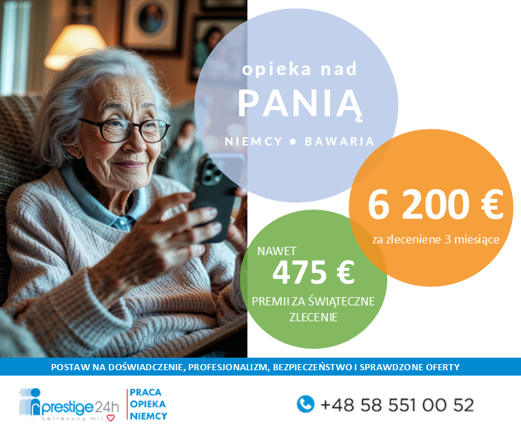 nawet 6 200 EUR ZA ZLECENIE / Opieka nad seniorką 2000 EUR + 475 EUR Prestige24h Sp. z o.o. Sp. k. |